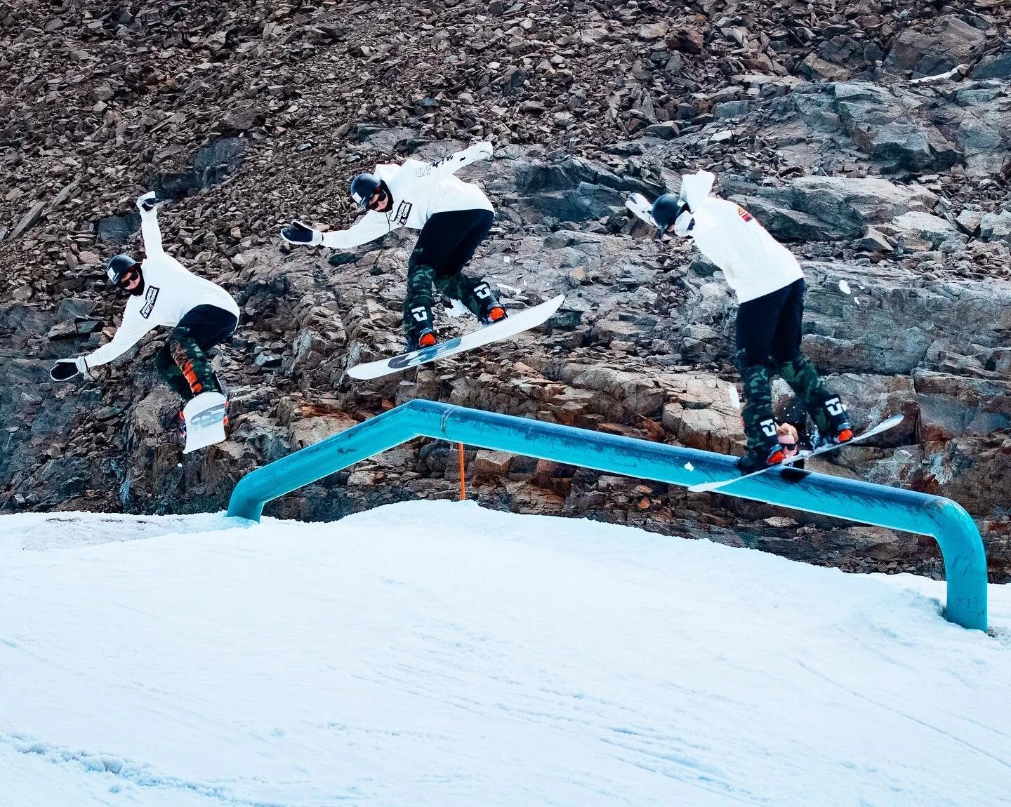 Les Deux Alps Snowpark was kept in prime condition all week by the incredible park team. The AfterJam and Jibworx crews teamed up the shapers to get the set-up competition ready, ambassadors, team riders and those on the holiday all put in a big shift to get the set-up up and running perfectly for the final day competition. The vibes were good on hill as snow got shovelled and rails got shifted. This is something the AfterJam crew plan to expand on in future trips due to the reception that the opportunity to learn and build features got at this year’s camp. It’s super satisfying hitting the set up you and your mates grafted to put together on the penultimate evening as the sun went down.